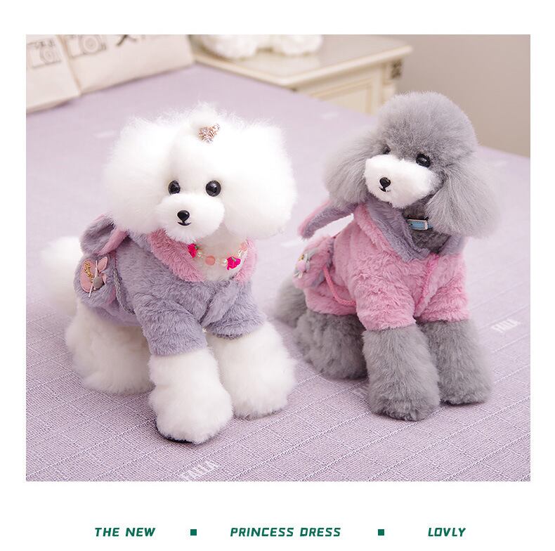 寒い季節にぴったりな、ふわふわのフリース素材を使用した小型犬向け冬用ウェア。