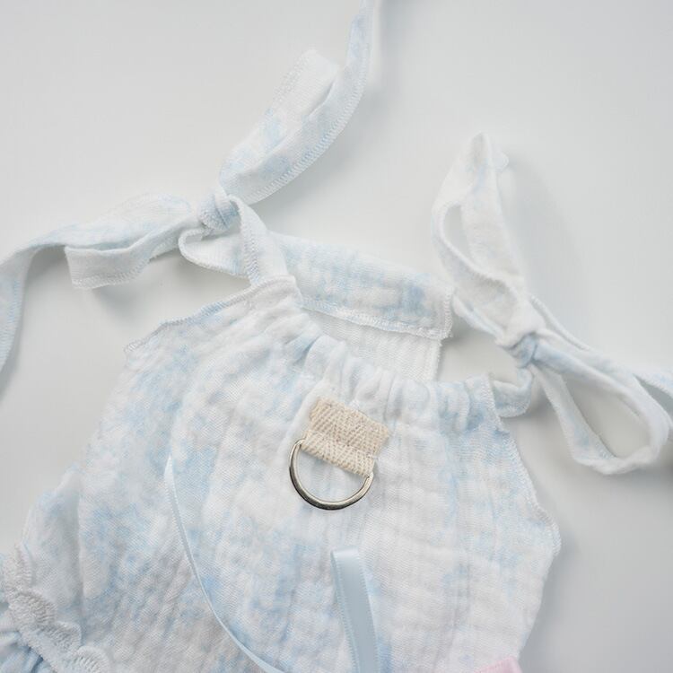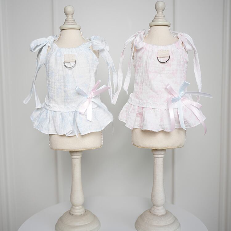 054 【2025春夏新作】綿ガーゼ素材のリボン付きペットワンピース 小型犬用 ビション・ヨーキー・コーギーにおすすめ PS0054