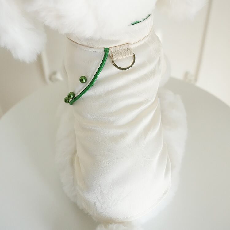 新中華風デザインにパールディテールを取り入れた、エレガントなペット用チャイナドレス。
