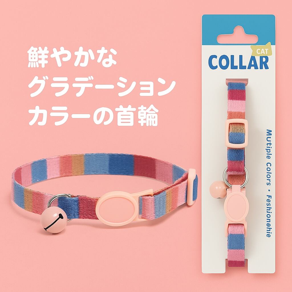 鮮やかなグラデーションカラーが猫ちゃんの個性を引き立ててくれる首輪。