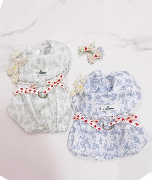 IC-011 春秋田園風ペット用ワンピースセット(ブルー/グリーン) IC-011