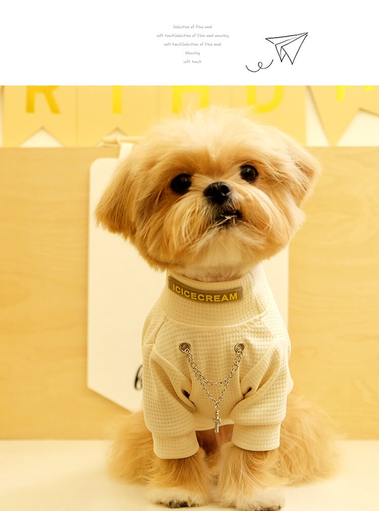 2点セット ペット用ワッフル地トップス&ネックレス(ブラック/ホワイト) IC-019