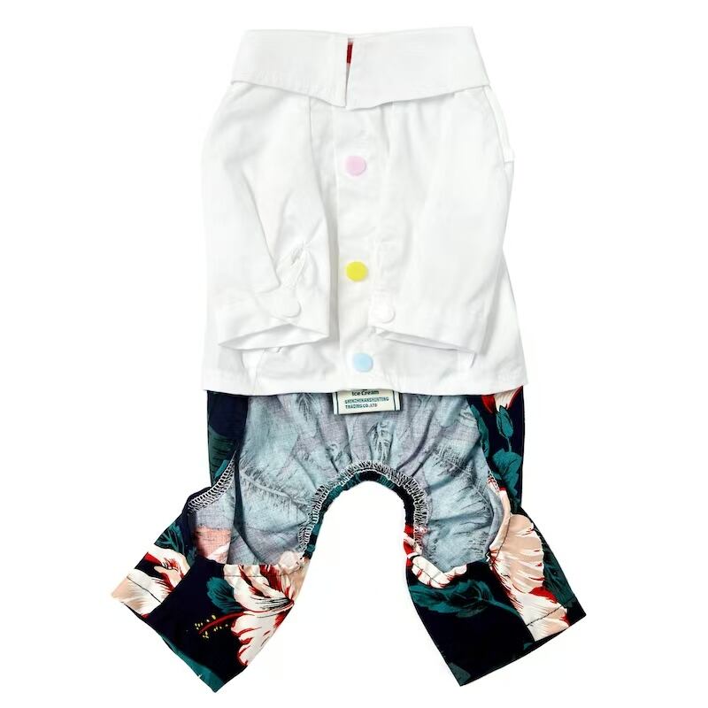 IC-026 2点セット クラシカルシャツ&フラワーパンツ ペット服 IC-026