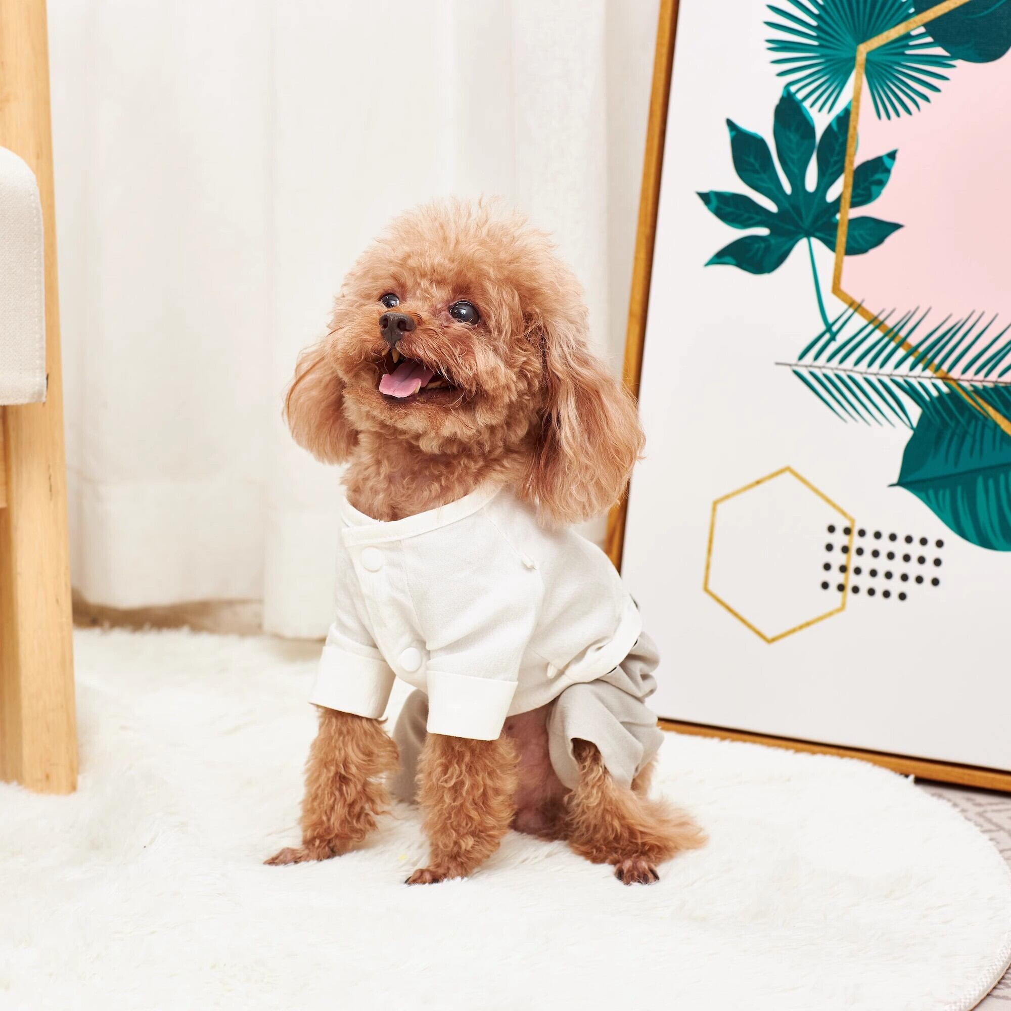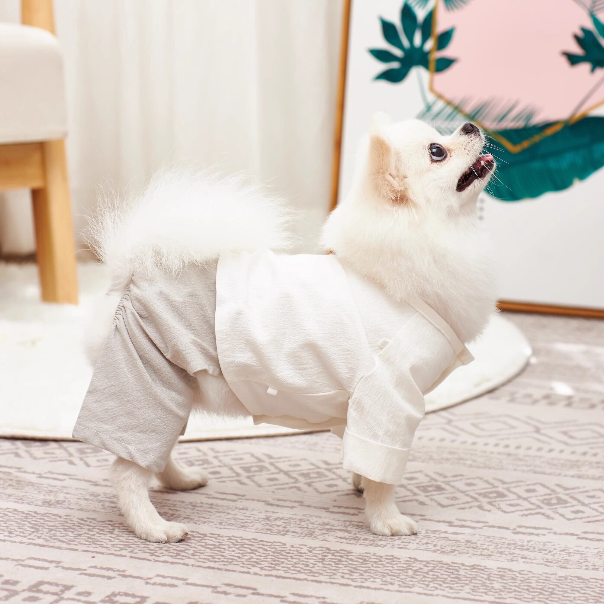 IC-027 リネンシャツ&パンツ ナチュラルコットンリネン ペット服 IC-027