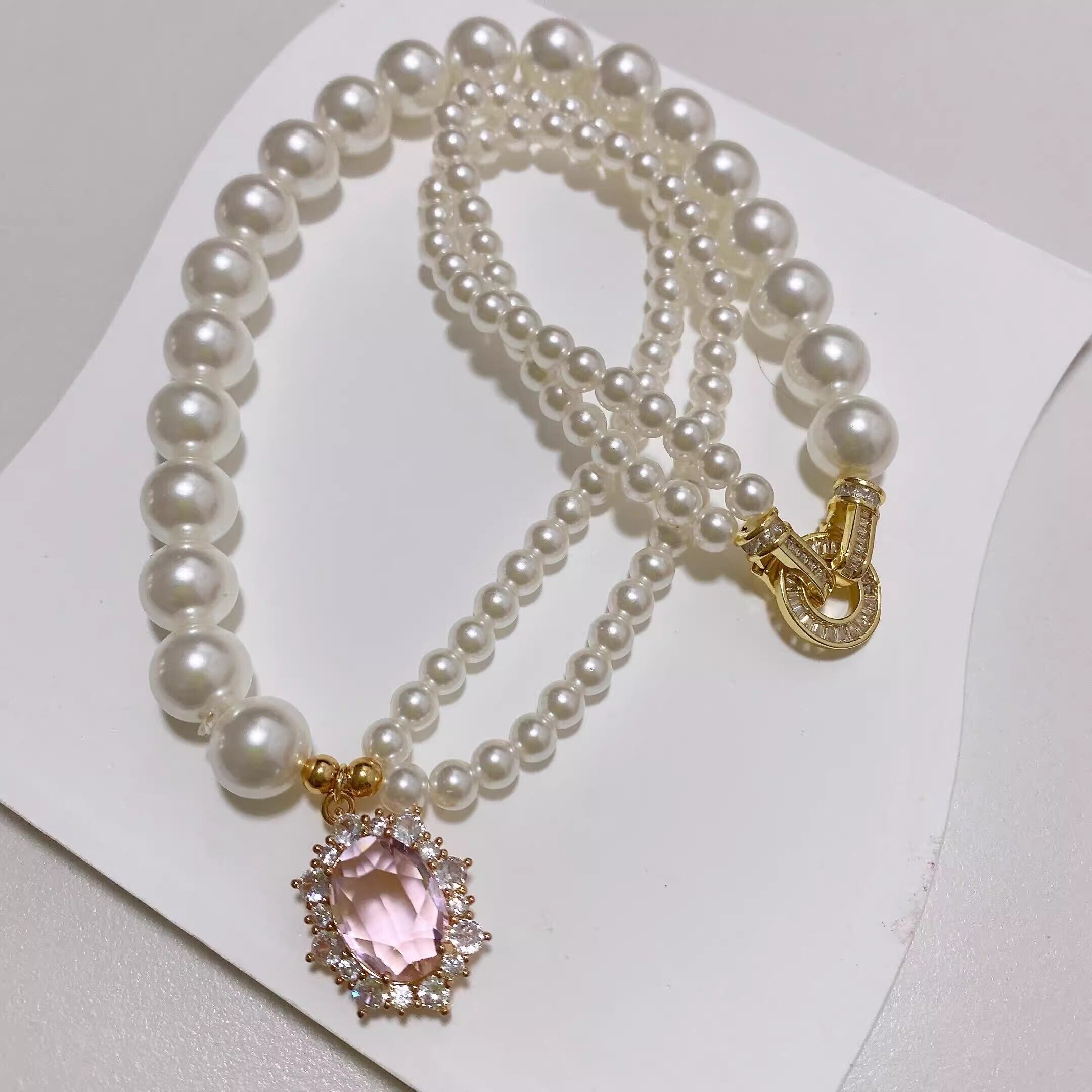 素材には14Kゴールドコーティング、天然貝パール、ジルコニア、黒スピネルなどを贅沢に使用。