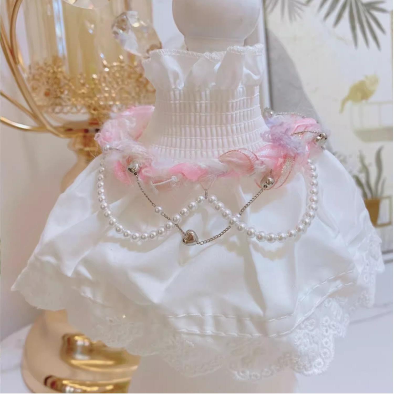 IC-037 グリーンフェアリー/ピンクメモリー 編み込みパールネックレス ペット用アクセサリー IC-037