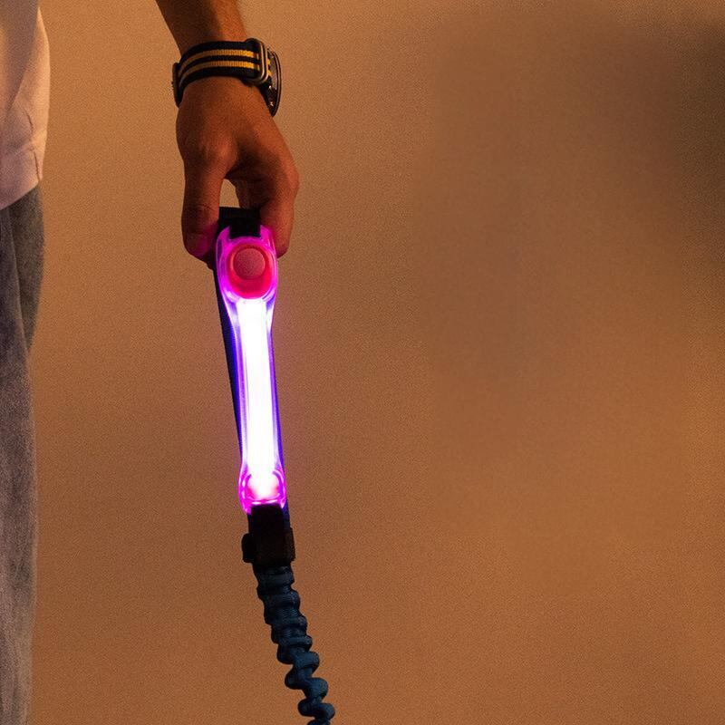 マジックテープ付きで腕やリュック、リード、自転車などに簡単装着。