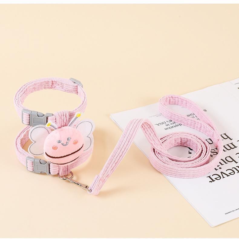 小型猫用ミツバチハーネス&リードセット 可愛い工字型 胸にやさしい調節可能タイプ PS0166