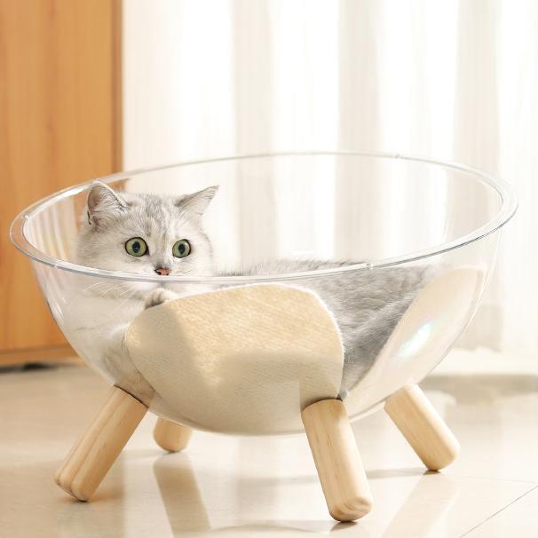 42cm大空間・木製脚付き宇宙船型猫ベッド・四季兼用 PS0195