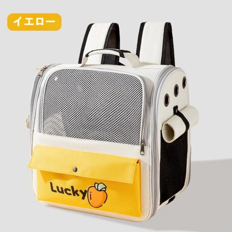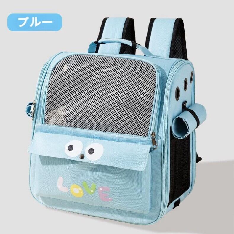 ブルー×オレンジ!にんじん柄が可愛い通気快適猫用リュック PS0199