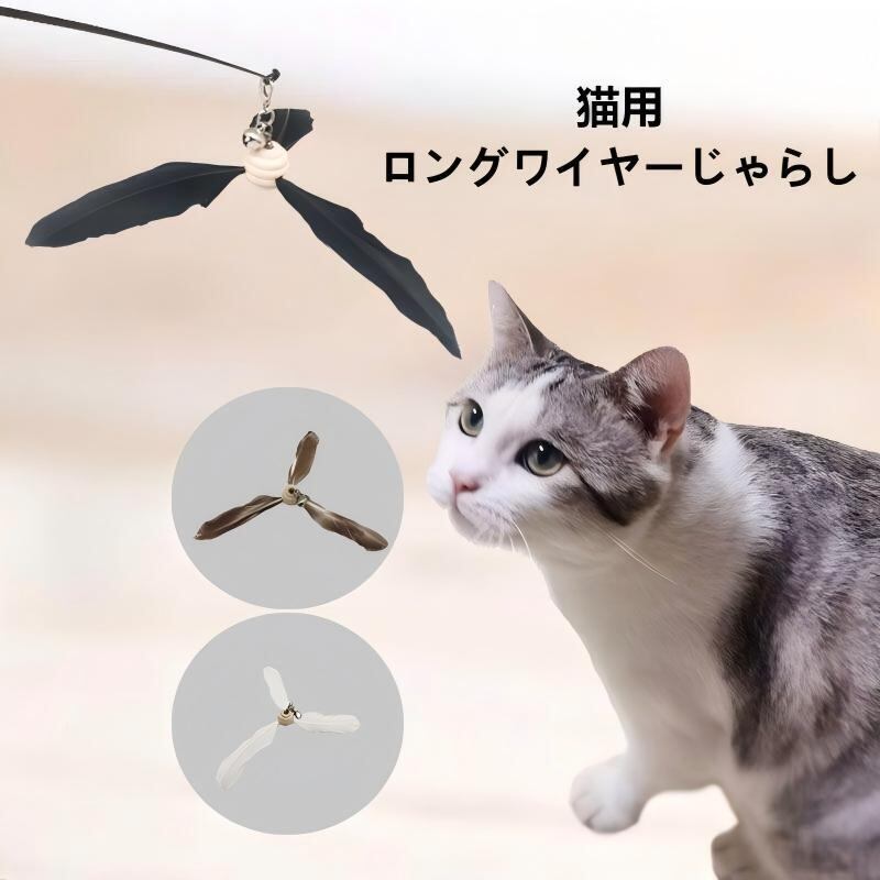 2025新作 猫用ロングワイヤーじゃらし 鈴付き 羽根&風車デザイン PS0216