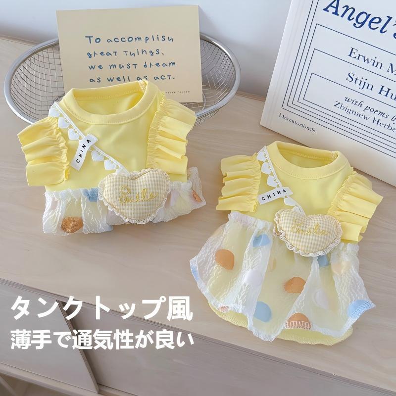 2025新作 ペット用 サマードレス タンクトップ風 ハート柄 スカート付き PS0219