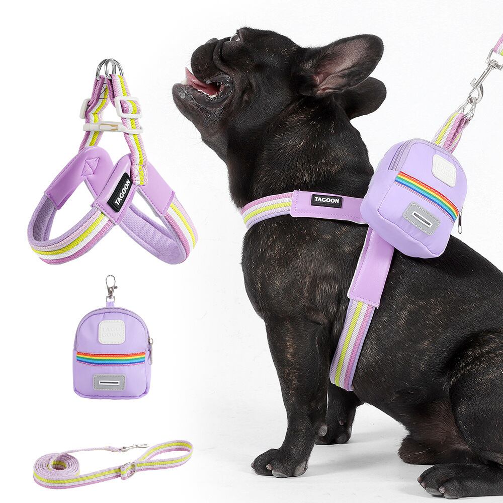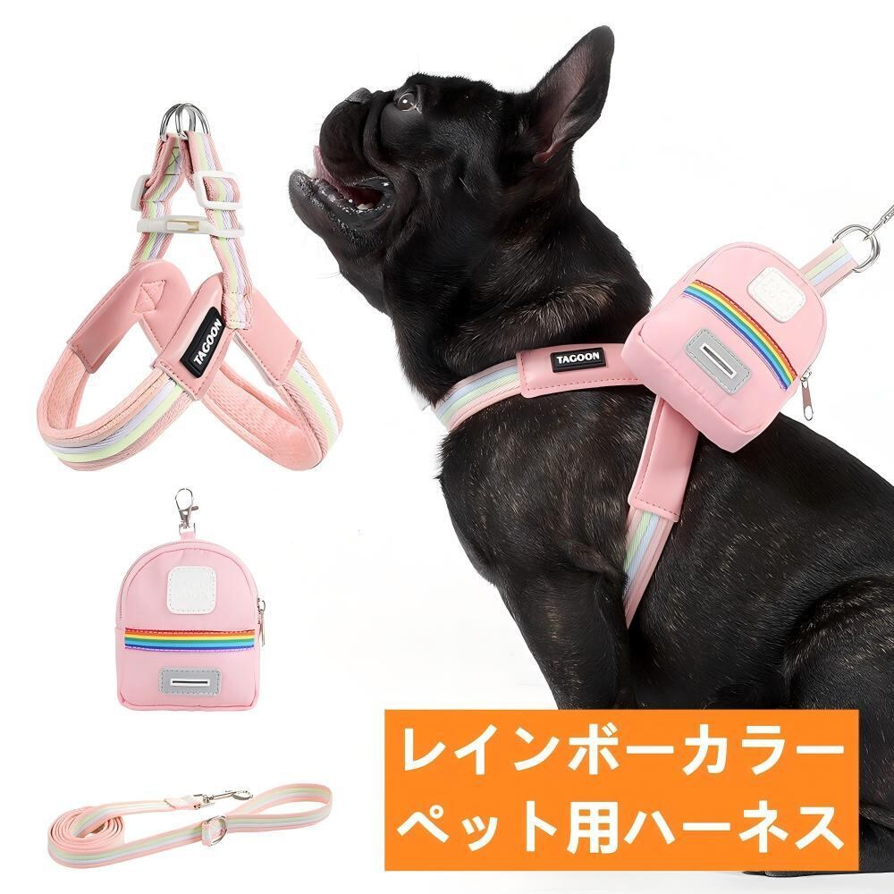 3点セット レインボーカラー ペット用ハーネス 通気性抜群 軽量ドッグリード PS0239