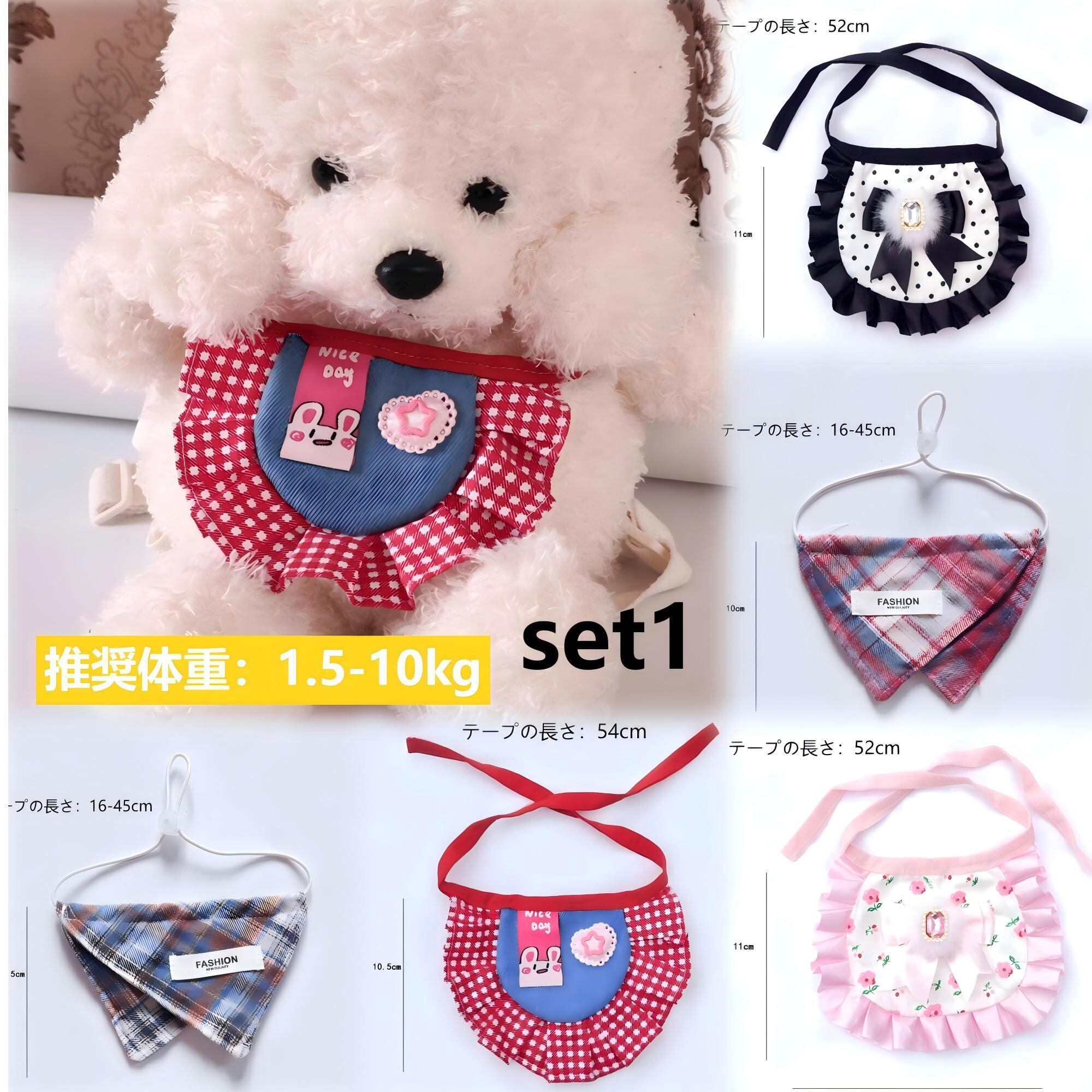 5種類の異なるデザインがセットになった、お得で華やかなペット用スタイです。