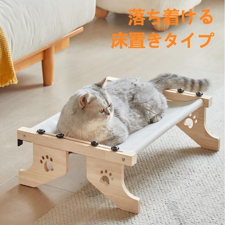 吊り下げ式が苦手な猫ちゃんにも安心の、床に置くだけで使える落地タイプのキャットベッドです。