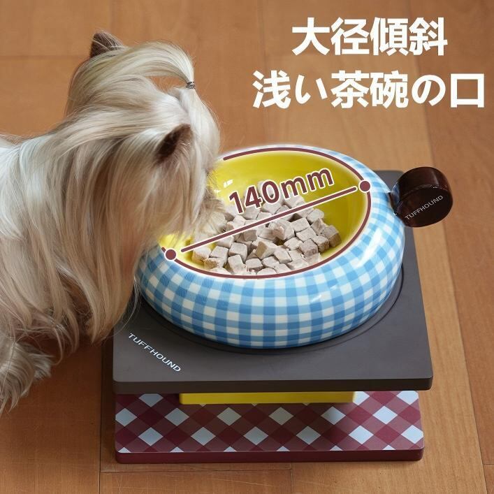 陶器製の猫犬兼用フードボウルにスタンドが付いた便利なセット。