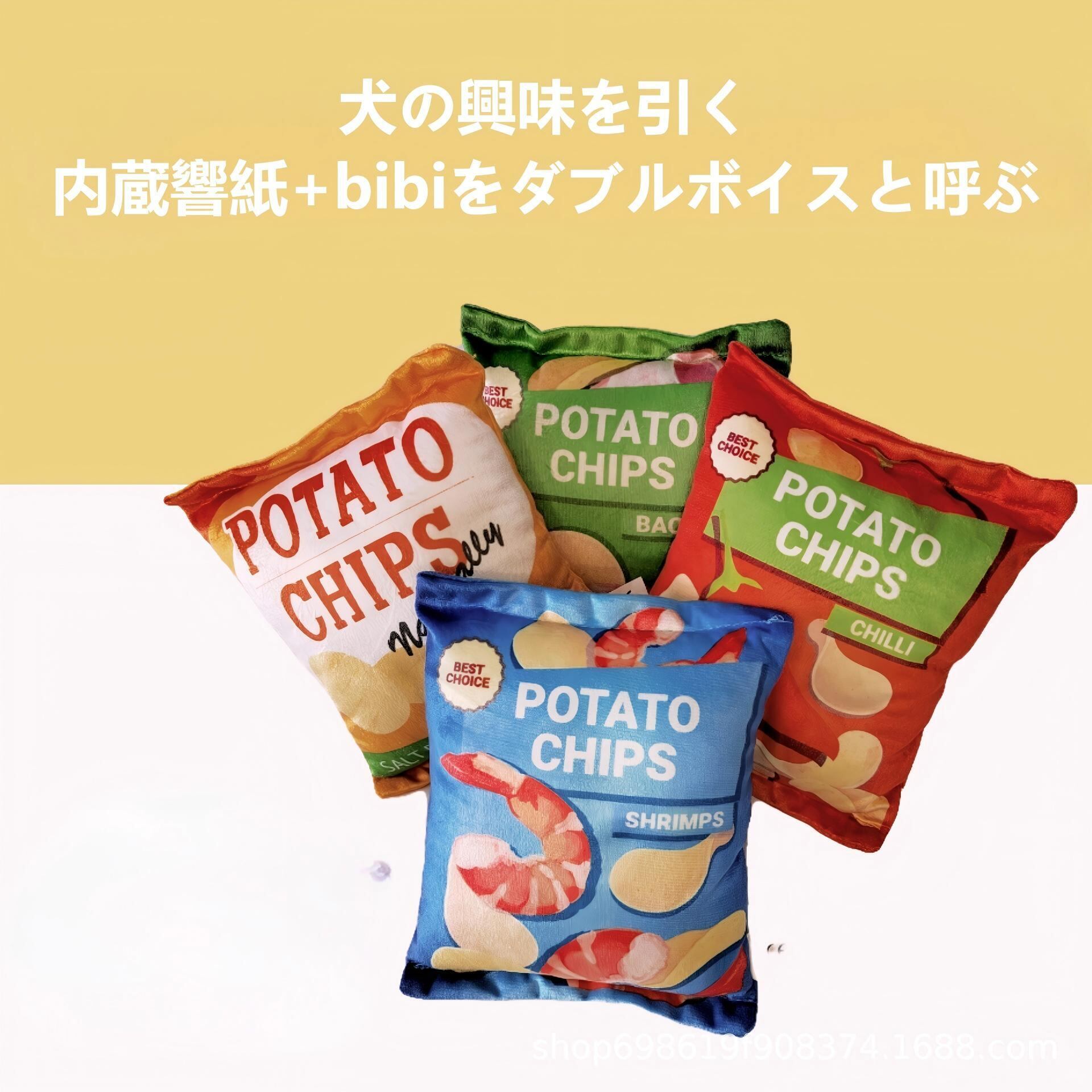 噛んで楽しい!チップス&ドリンク風 犬用発声ぬいぐるみトイ 4個セット PS0286