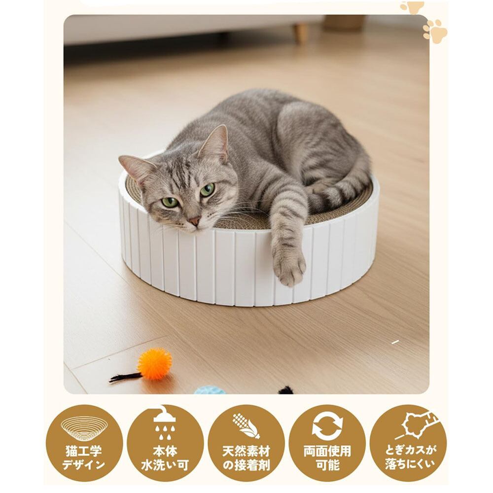 【猫工学設計】猫 爪とぎ 詰め替え 丸型 段ボール 本体セット 水洗い可能 両面使用可能 猫ベッド 爪研ぎ防止 運動不足 ストレス解消 高密度 耐久性