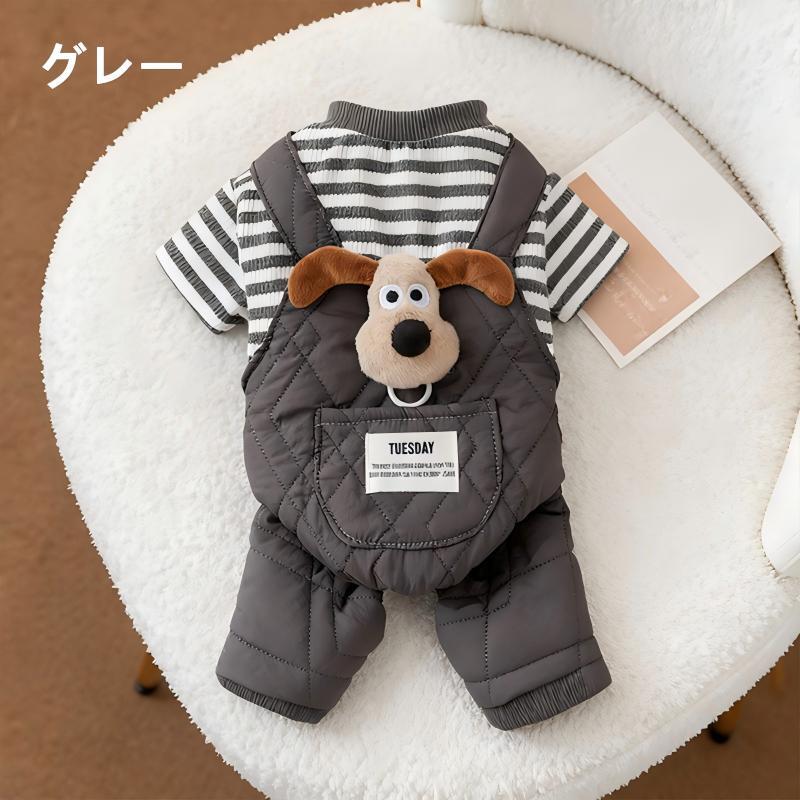 秋冬厚手 四足タイプ カートゥーン犬用サロペット 防寒 PS0338