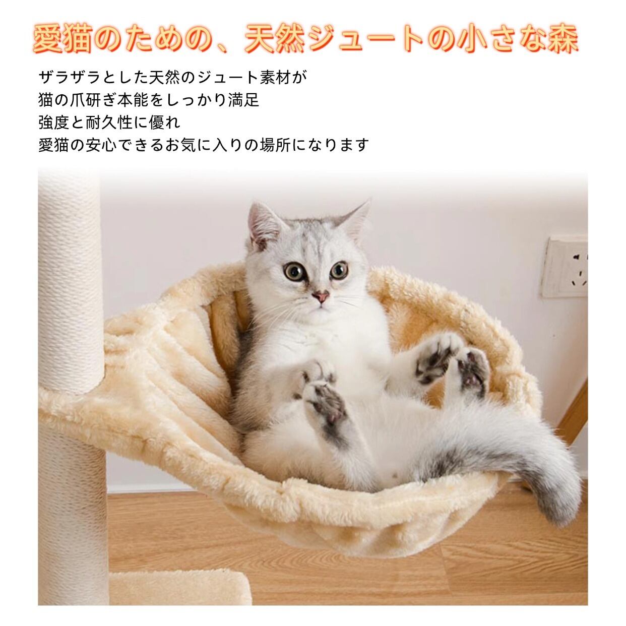 猫爬架、猫窝、猫树を一体化した多機能キャットタワー。