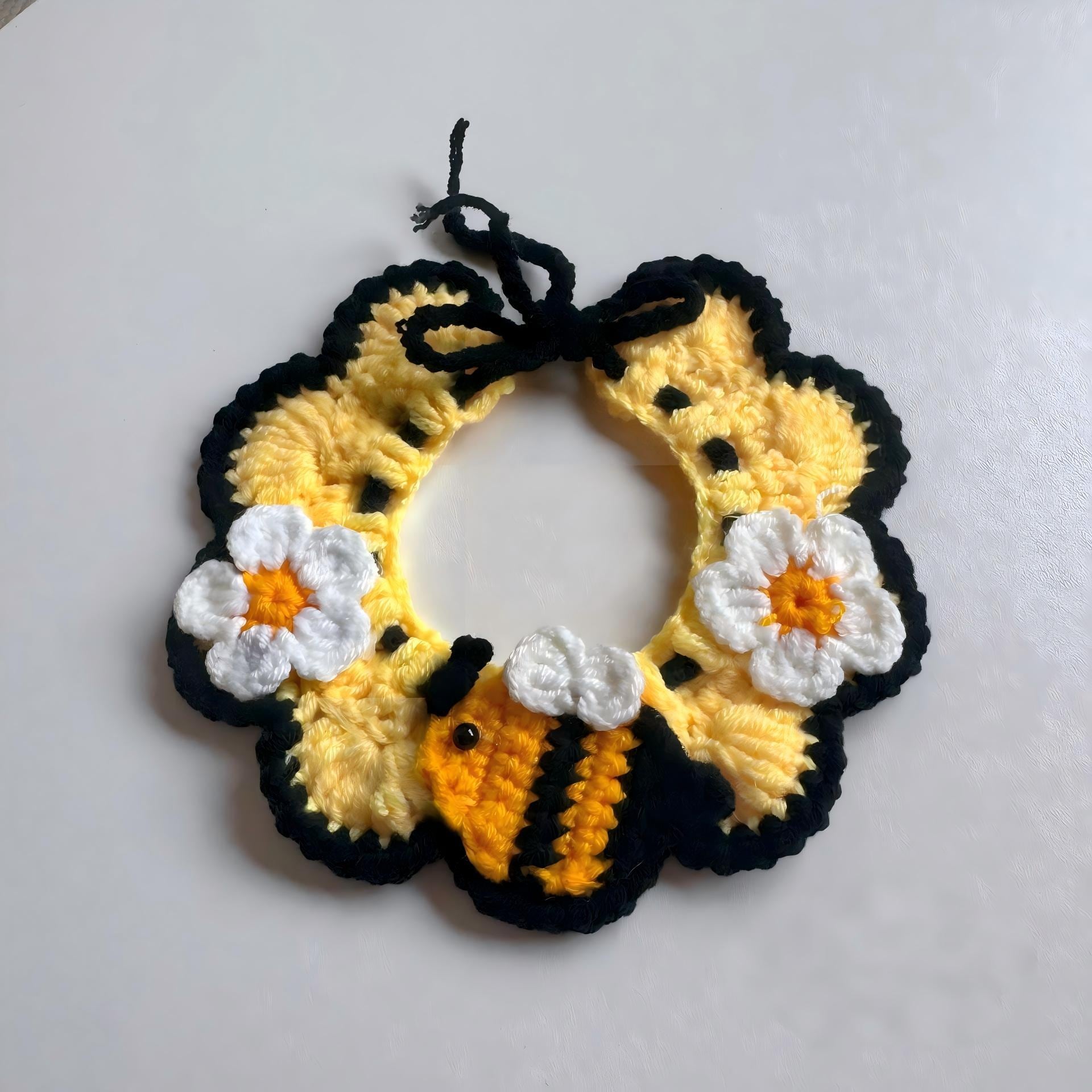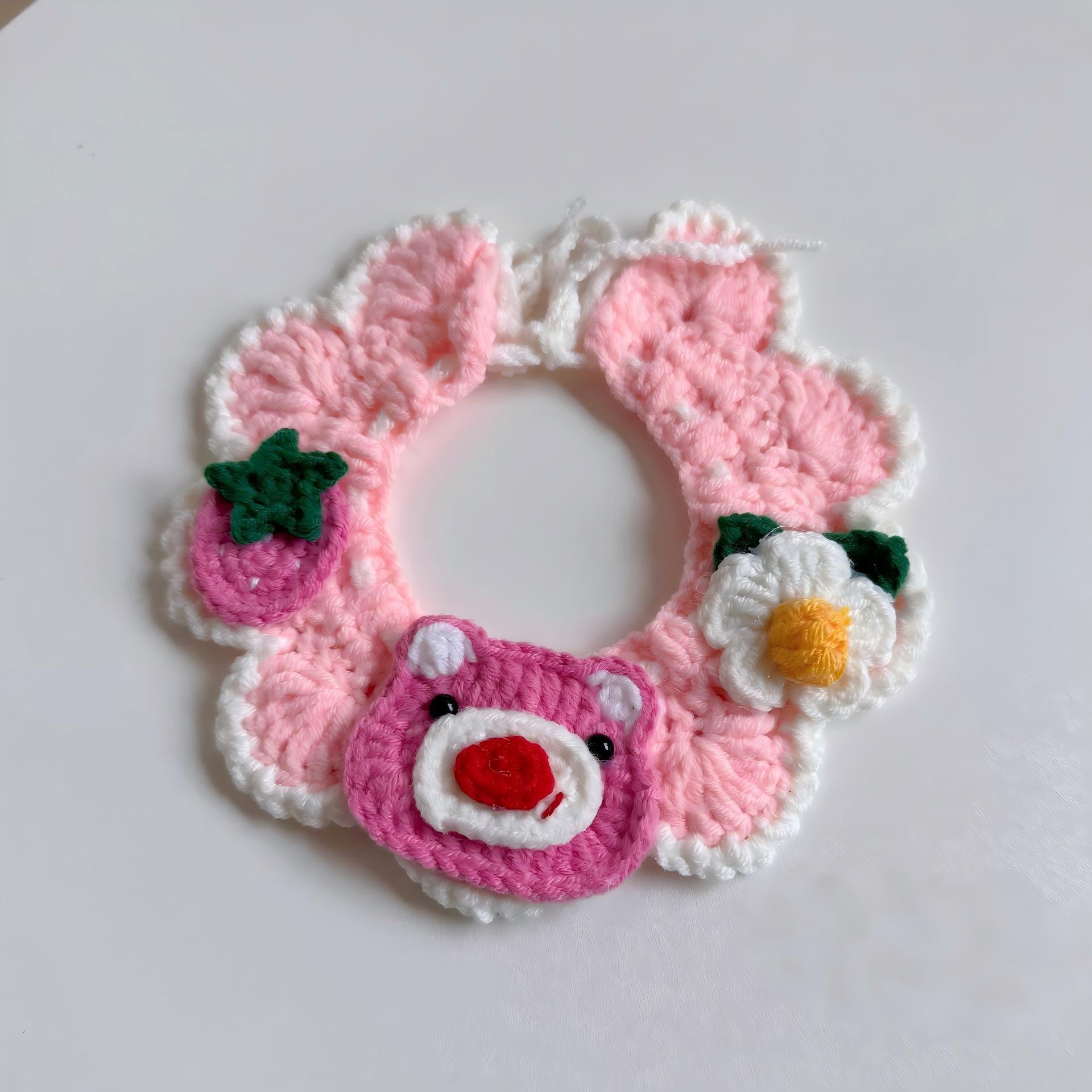 猫 犬 ペット用 ニット スタイ 首輪 5枚セット 春 フリル 蜂 モチーフ 手編み かわいい 小型犬 猫用 PS0357
