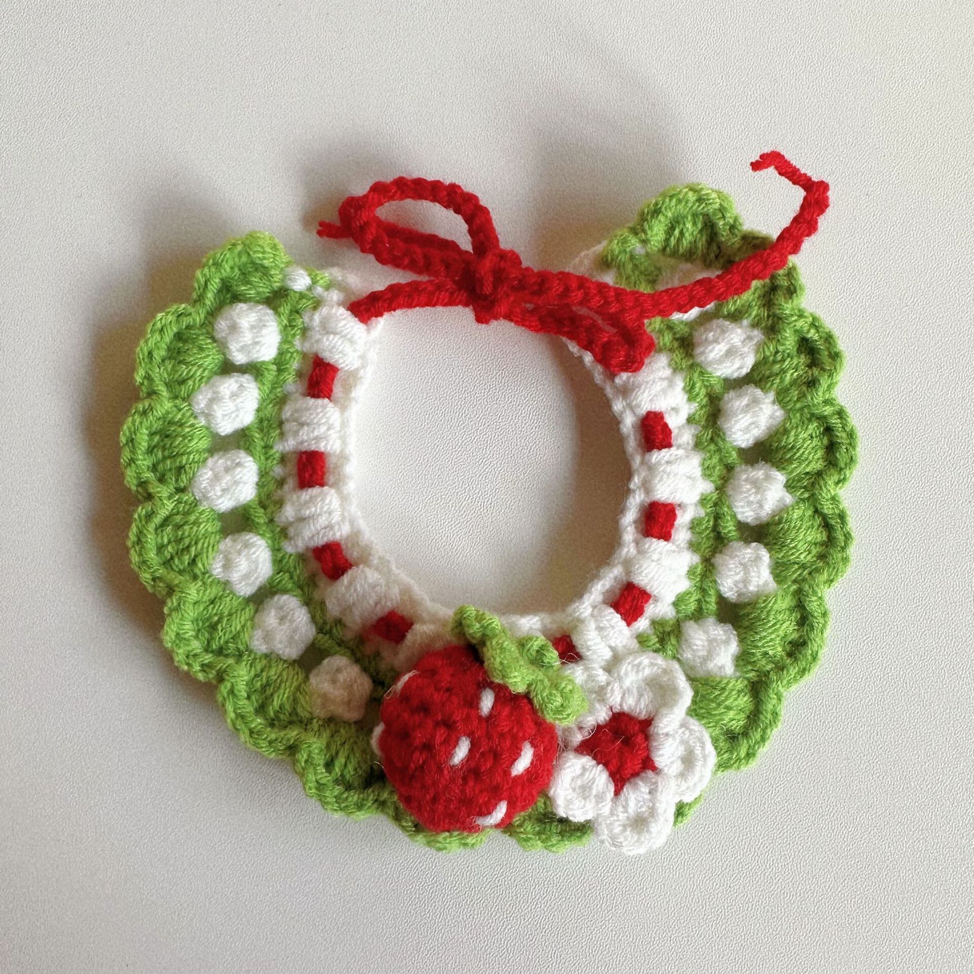 上品な印象に仕上げた、手編みニットのペット用カラーです。