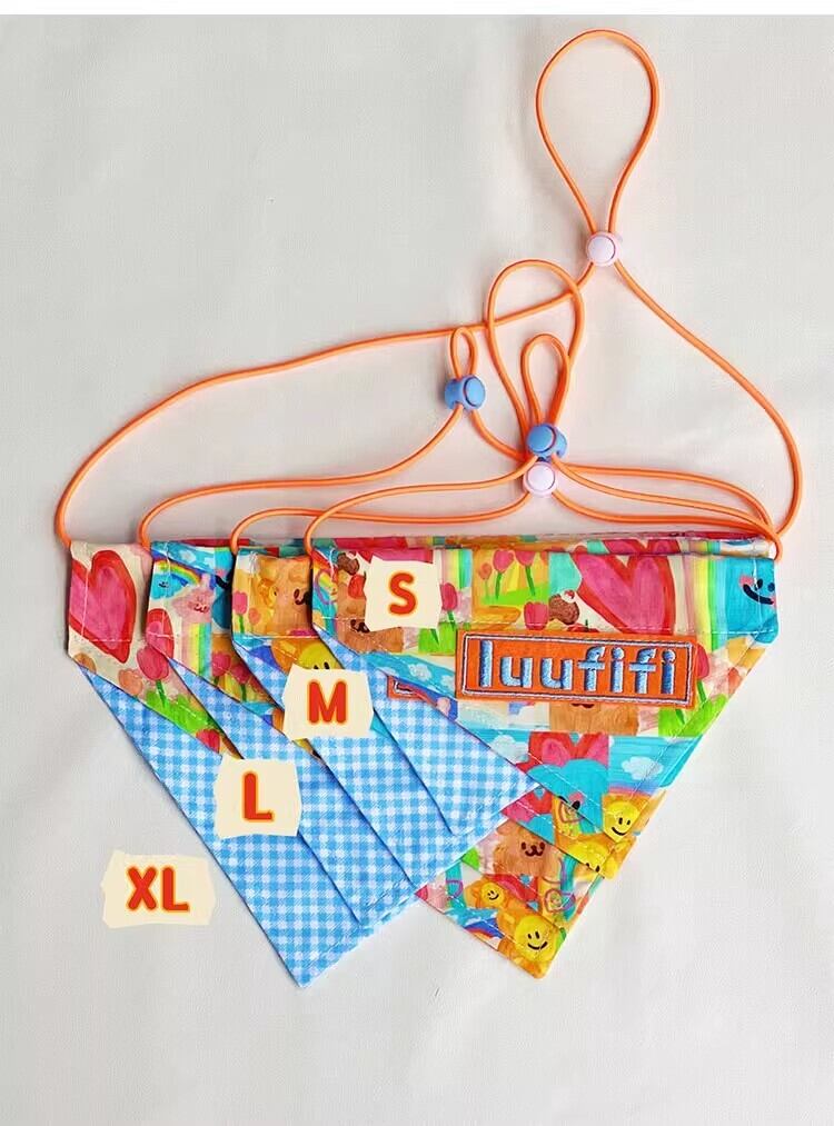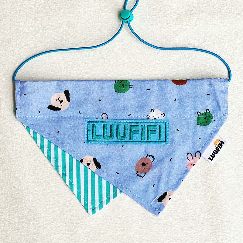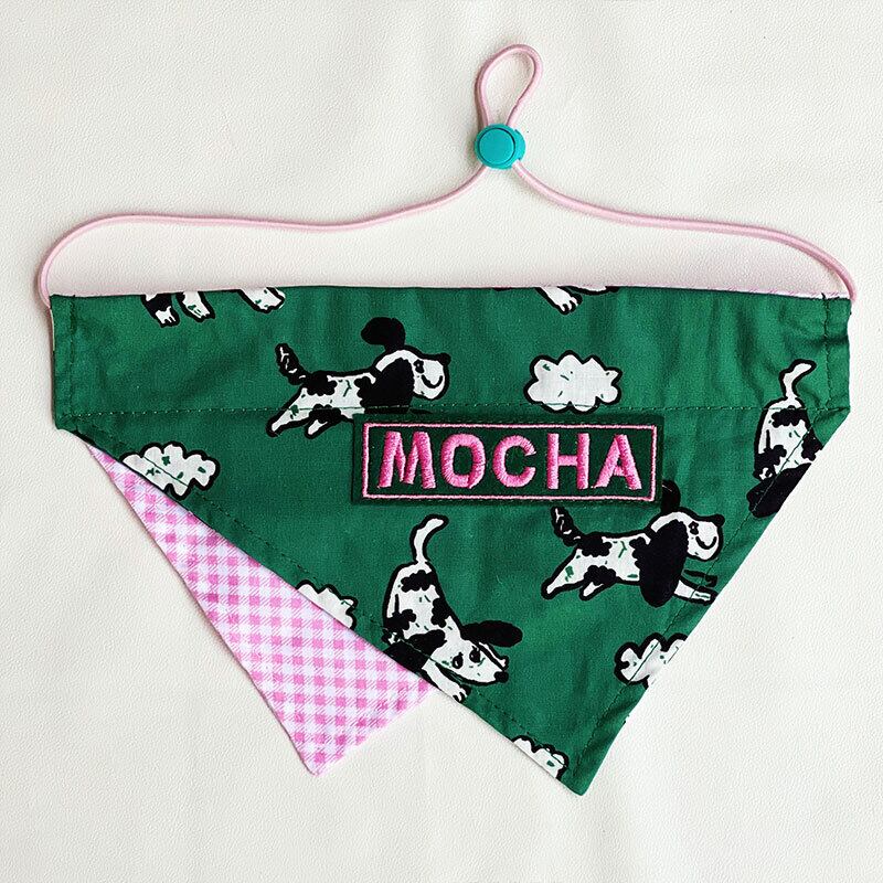 愛犬 愛猫にぴたっり 名前・電話番号刺繍入り 名札付き ペット用バンダナ よだれかけ スカーフ 首巻き 犬猫用 柴犬対応