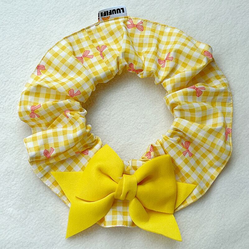 蝶結び チェック柄 ペット用 アクセサリー シュシュ 首輪 犬猫用 スタイ おしゃれバンダナ フリル付きスカーフ 中型犬用 柴犬