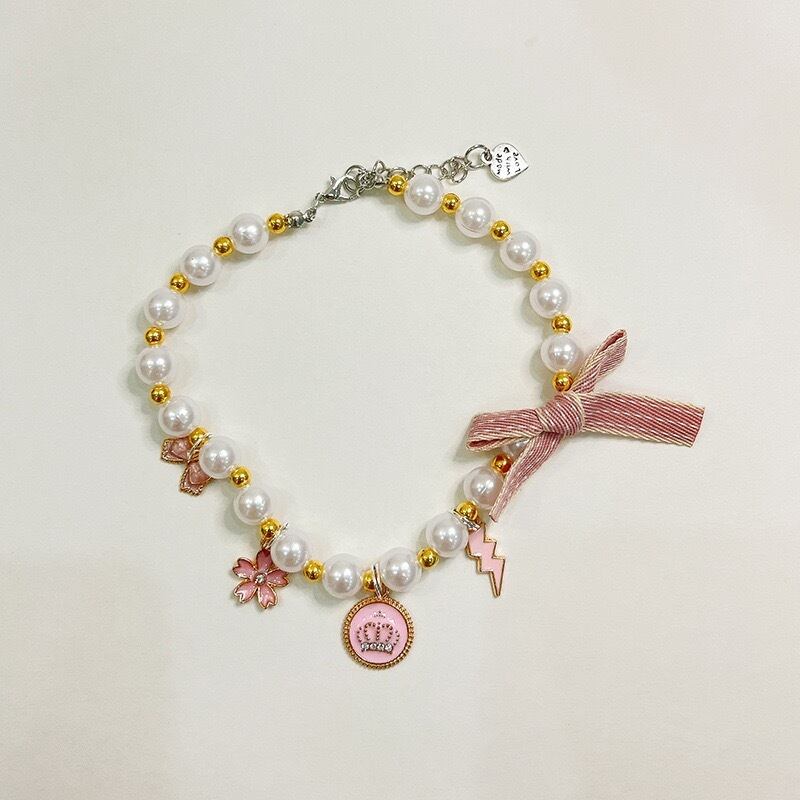パールペットネックレス - 猫ちゃん&ワンちゃん用おしゃれ首輪 | ブルー&ホワイト ブリティッシュショートヘア、アメリカンショートヘア、トイプードル、ヨークシャーテリア用 可愛いアクセサリー C0002