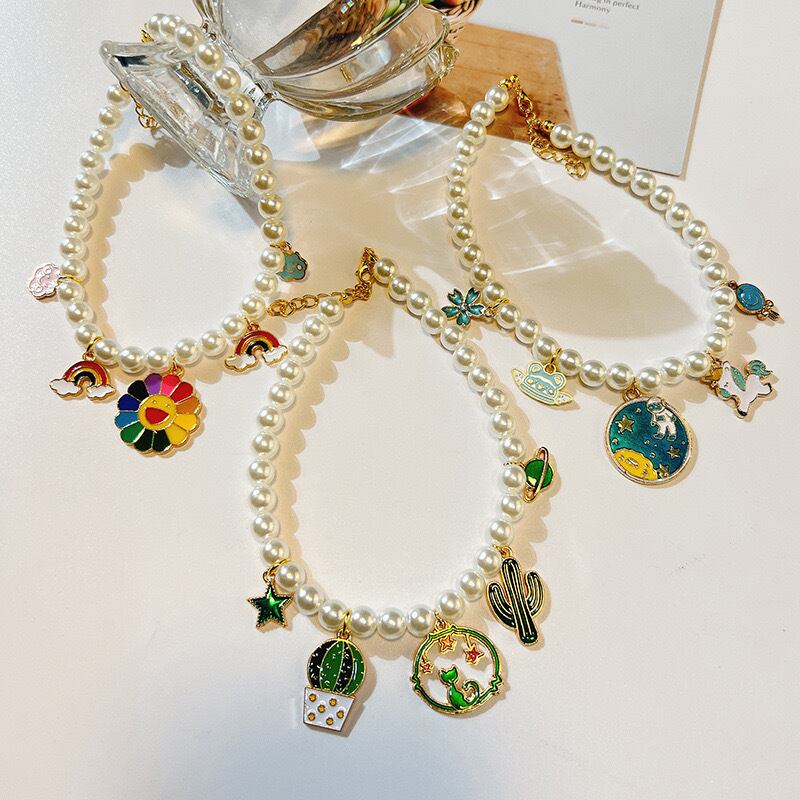 オリジナルペットネックレス 猫ちゃん&小型犬用おしゃれ首輪 可愛いパールネックウォーマー&アクセサリー C0006