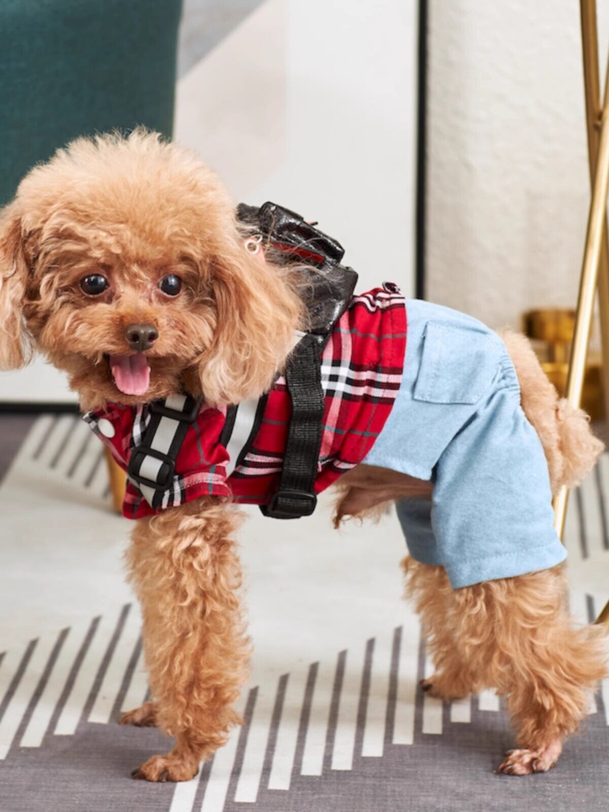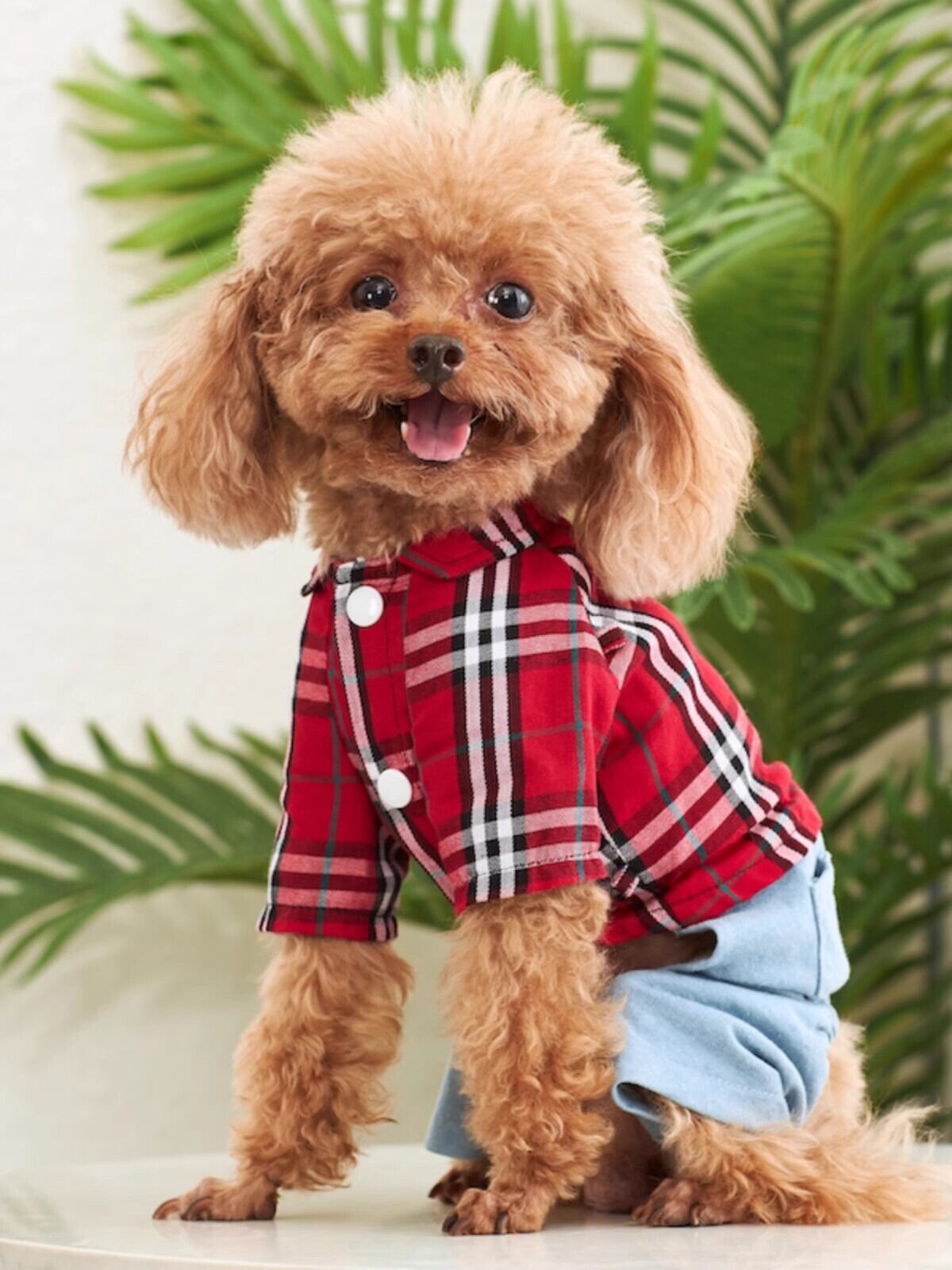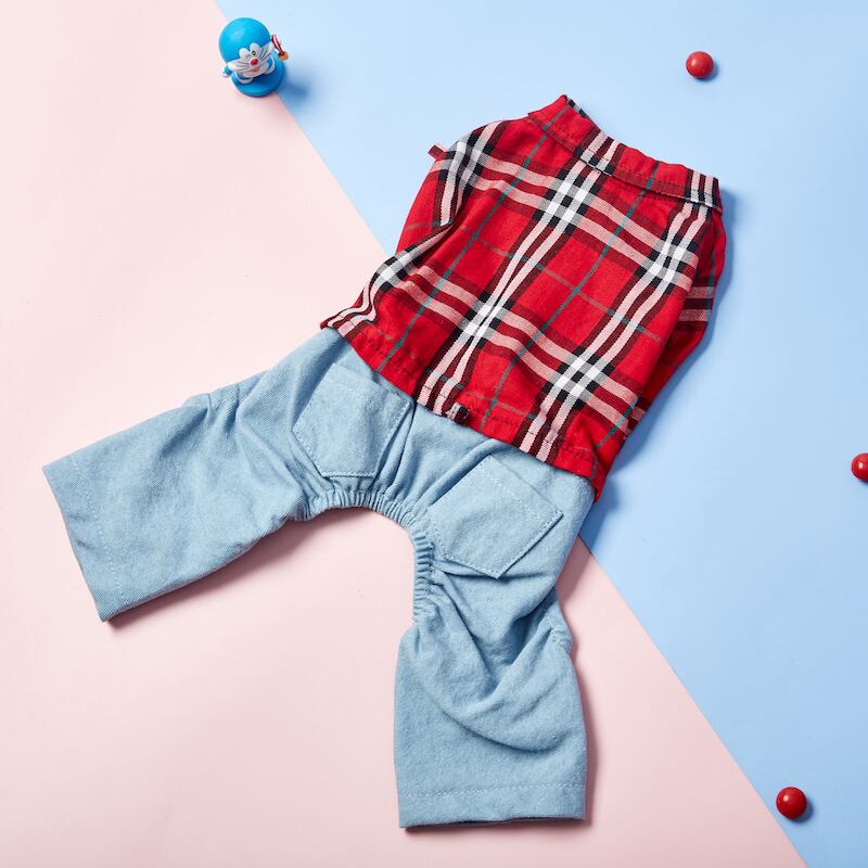 【ICオリジナル】純綿チェックシャツ&デニムパンツ 犬用カジュアルファッション服