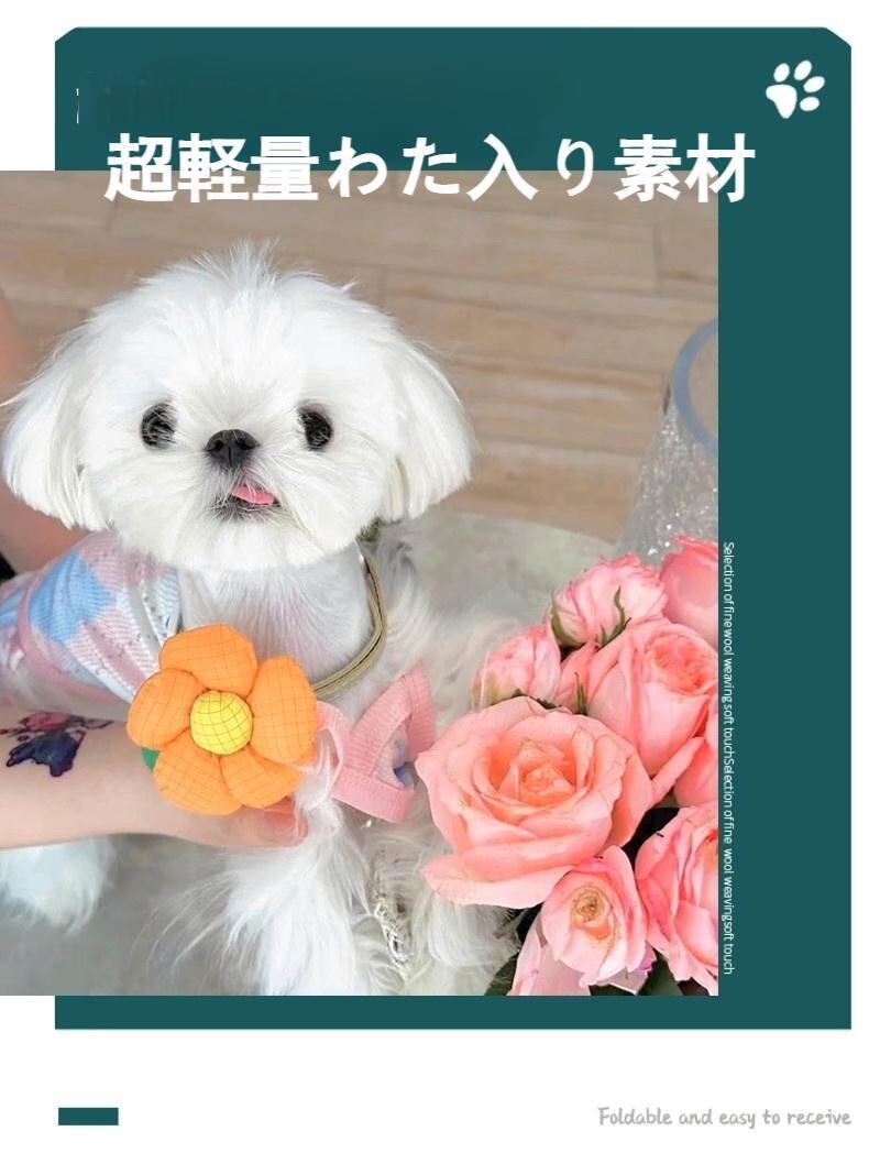 軽くて柔らかいわた入り素材を使用。ペットに負担をかけず、快適に着用できます。